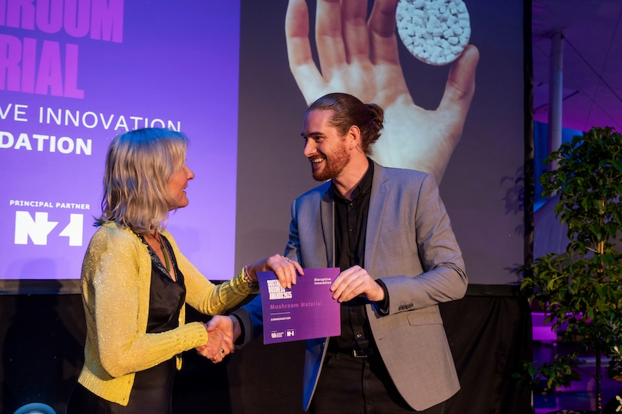 Mushroom Material received a Commendation for the Disruptive Innovation Award at the Sustainable Business Awards last month. It is on the Sustainable Business Network’s Next list of 2025 awards finalists.